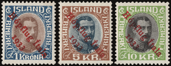Airmail, 1933, "Hopflug Itala" complete (Scott C12-C14), a bright, fresh set, o.g., very lightly hinged, Very Fine, signed Sanabria, each with a 1997 A.P.S. certificate. Michel 172-174. Facit 165-167. Scott $2,075. (Image)