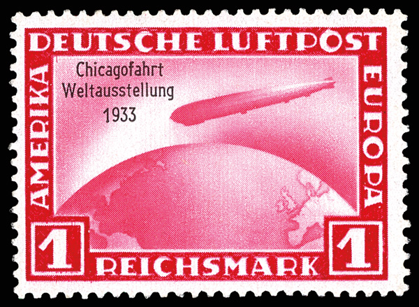 Airmail, 1933, 1m-4m Chicago Flight Zeppelins complete (Scott C43-C45), o.g., never hinged, Post Office fresh with compelling color on bright white paper, Very Fine, each with 2023 P.F. certificate. Michel 496-498. Scott $3,250. (Image)