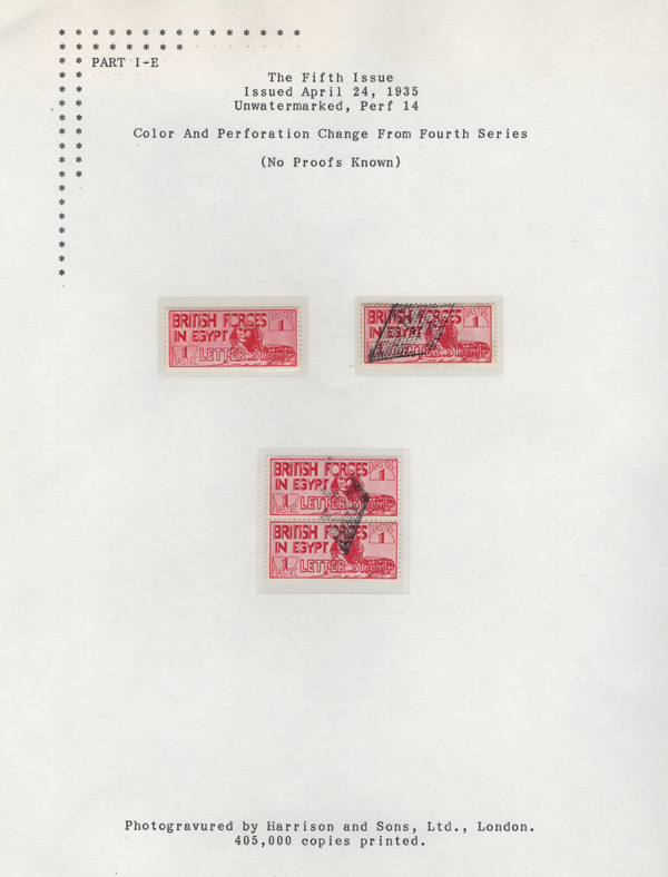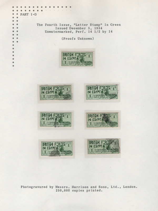 1935 (Apr), Sphinx Letter Stamp, 1pi carmine, perf 13½ x 14, Small Collection (Scott M8), comprises mint & used singles, a used pair and 11 covers to England and one to Scotland, all but one with red Crowned Circle franks including numbers 3 (with London N.A.A.F.I. Postal Room receiver), 4 (2), 17 (2), 19 (5, one with a pair & one with the stamp on the front, tied by a "retta" and by the Crowned Circle), 20 (stamp on the front, tied by a "retta" and by the Crowned Circle); also a 12th cover with no Crowned Circle frank, just am "M.P.O./Cairo c.d.s.; all on Exhibition pages, Fine to Very Fine. SG A9. Nile Post BF8. Shipping charges apply - weight 0.8 lbs. Stamps from the April printing have 12 perforation holes and a wide bottom perf on the sides; those from the December printing have 13 perforation holes. (PDF for this Lot) (Image)