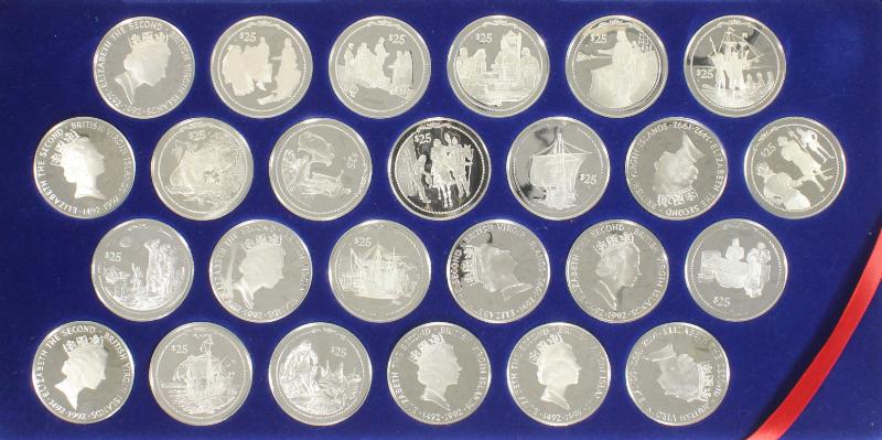British Virgin Islands 1992 Boxed set of (25) $25 sterling silver proofs "The Discovery of America"; produced by Franklin Mint, total 16.015 oz ASW (Image)