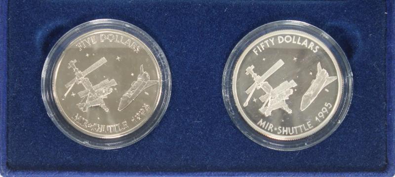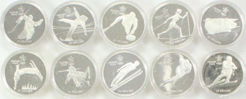 (9) Olympics related silver "crown" type coins 1994-2000, plus (2) extras: Australia KM# 218, 219, 815; Austria 3026, 3027; France 1047, 1048; Greece 165, 166; each in plastic round; non-sports incl Canada 1992 $1 Stagecoach #210 and Marshall Islands 1995 2-coin set Mir-Shuttle $5 CuNi and $50 1 oz silver; total ASW 10.765 oz. (Image)