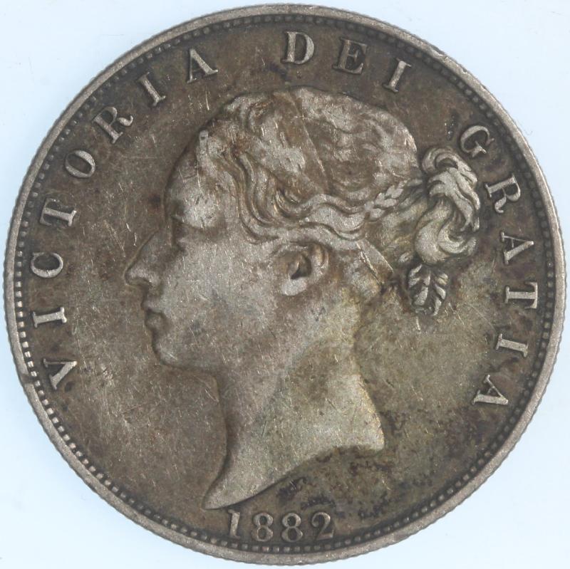 Great Britain 1882 Half-Crown XF or very nearly so. KM756 young head of Queen Victoria. A beautiful grey-brown original. A scarcer half-crown w/ a mintage of 808,000 when average production ran more in the 1.5 to 3 million range. Krause XF is $485! (Image)