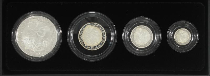 Great Britain 2010 Britannia silver proof set of (4) in original packaging w/ papers; 1, 1/2, 1/4 and 1/10 oz coins (Image)