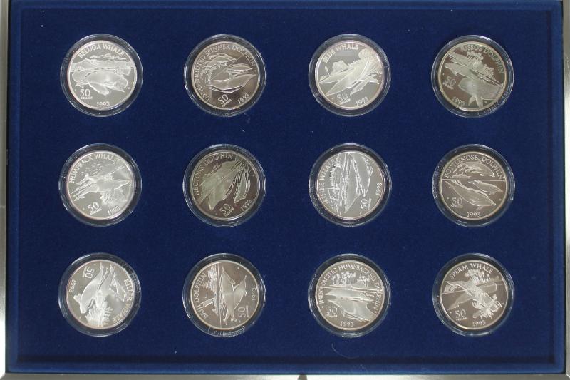 Marshall Islands 1993 Boxed set of (12) $50 1 oz fine silver proofs "Whales & Dolphins of the Pacific" w/ paper, fewer than 25,000 sets produced (Image)