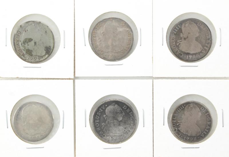 Mexico (6) 2 Real Coins all 18th Century dates 1779 // 1798 avg circ. (Image)