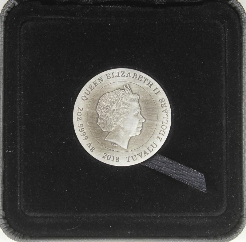 Tuvalu 2018 $2 high relief antique finish 2 oz. fine silver Vikings - Warfare commem, in original packaging, #400/2000 from the Perth Mint (Image)