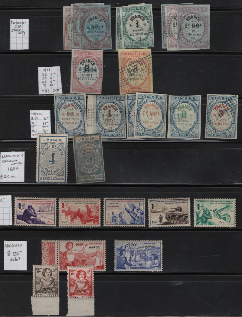 FRANCE abt (850) on stkpgs, diff types of taxes incl posters, bill of lading, dimension, customs, lemonade, commerce, social security, receipts, etc, incl few labels; gen light dup w/ few heavier; typical cond (Image)