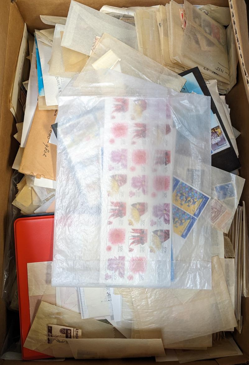 Accum (1000s) used in glassines, a few unused, mostly IDed by Scott but some not, large amount of Australia, some bundleware, the best item is Canada #15,many useful, time should prove rewarding, few flts but mostly F-VF (Image)