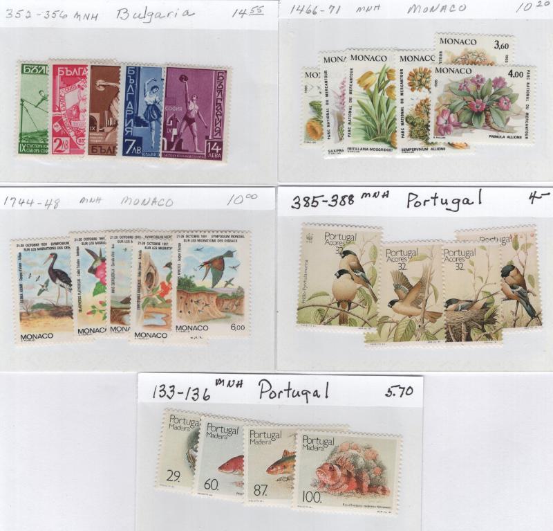 2nd half of 20th Cent stock (100s) on 102 cards consisting of Bulgaria $179, Monaco $460, Neth $95 & Portugal incl Azores & Madeira $180; mostly NH w/ some Monaco H & some Neth used; light dup, could be few flts but gen F-VF; owner's 2023 CV (NV) (Image)