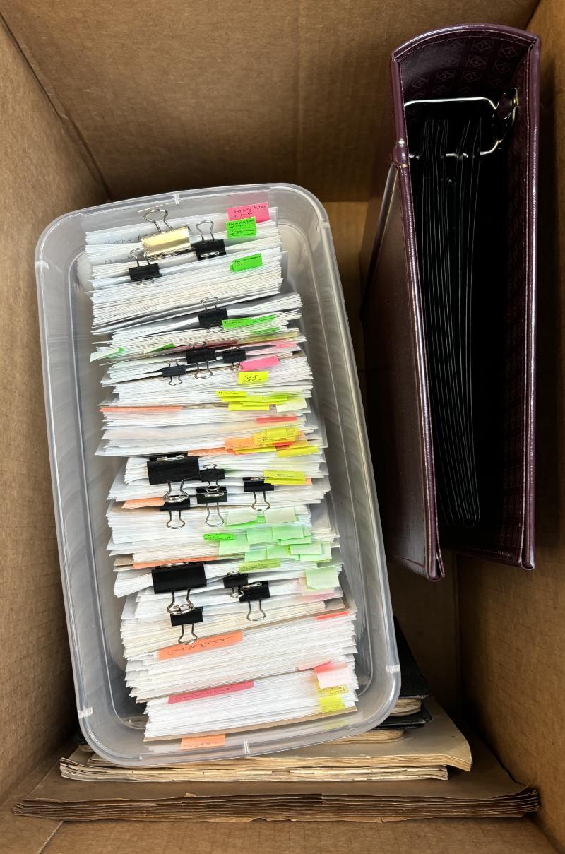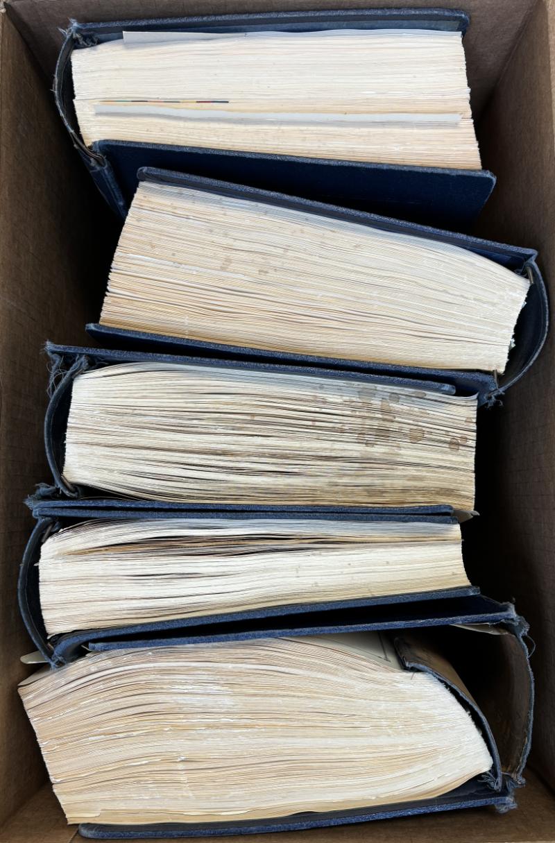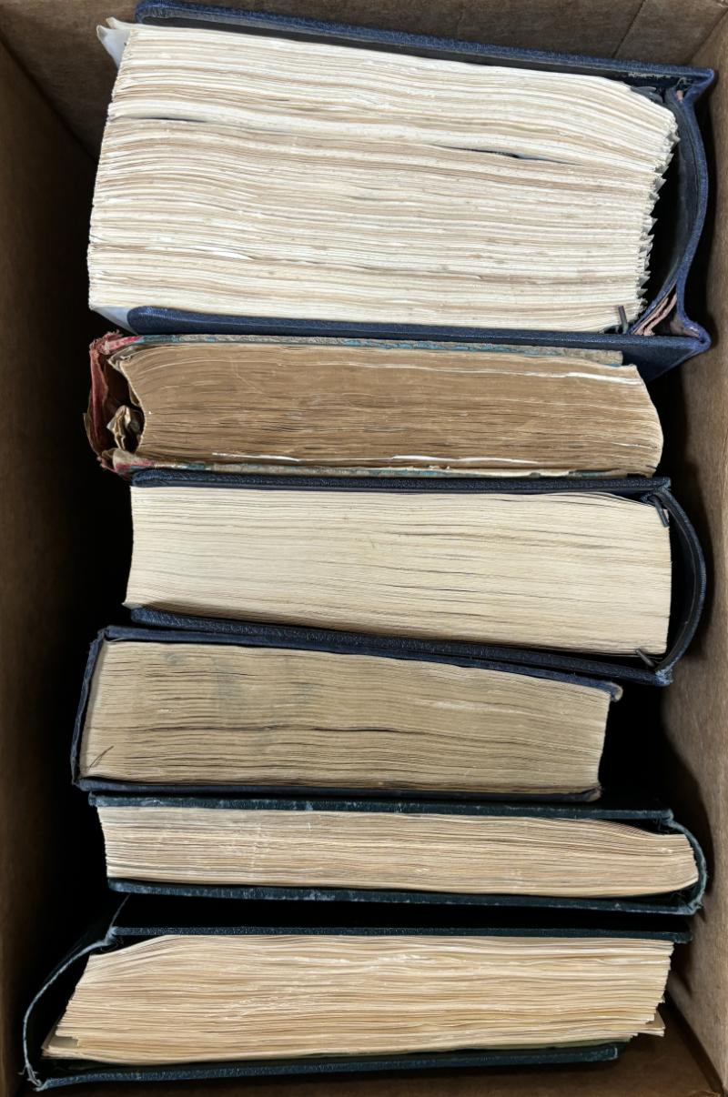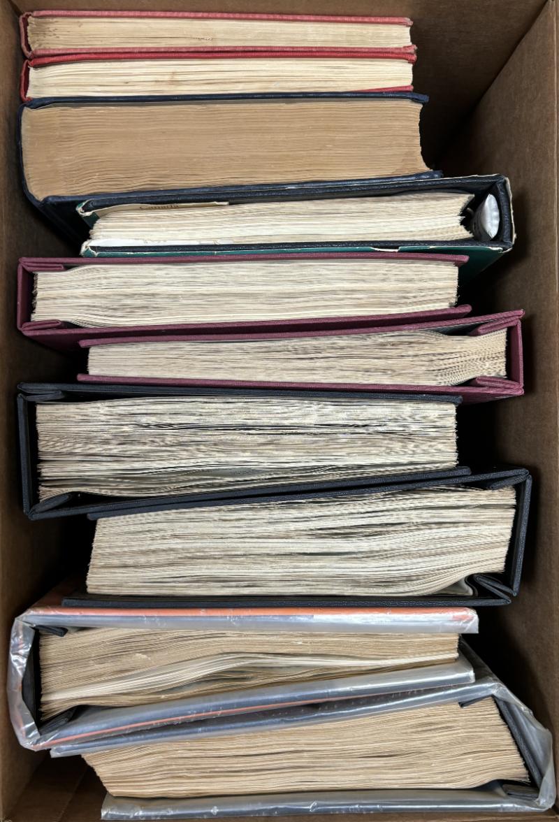 Estate Balance Lot stamps & supplies; incl Lighthouse stkbk & (2) W/A binders w/ slipcases, some glassines & sleeves, several journals incl Linn's, Topical Time, Illinois Postal History, Meekel's & others; baggies w/ US used on paper, most value is (2) dealer counter books w/ */O Classic GB & */O Hong Kong late Victoria to 1970s; gen F++