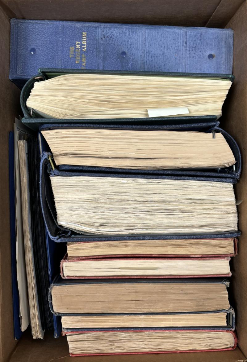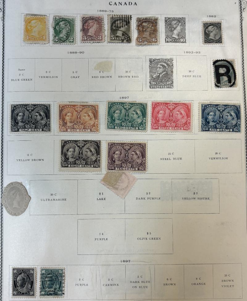 Accum (30) mostly used moderate to lightly filled WW albums incl (6) Minkus WW, (1) Canada, (3) Scott, (3) Harris, (1) Grossman, (1) W/A Japan, 1890 empty Schaubek, 1890s empty Lincoln album, (1) homemade, (12) Juvenile, (2) well filled stkbks, 1900 & 1906 Scott catalogues, mixed cond to F-VF (Image)