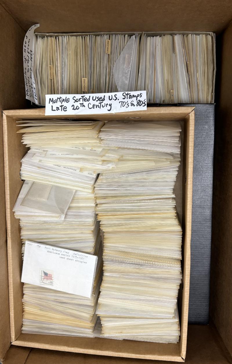 Collector's dup (1000s) sorted & IDed in glassines in (5) shoebox sized tubs & a small box, etc, almost all used, abt 40% Canada, slightly better marked w/ tabs, some heavier dup, expect some flts but much F-VF (Image)