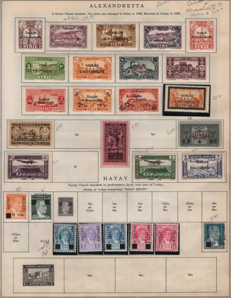 Country Collections few (100) on album pgs */O, owner's CV (NV) incl Alexandretta $198, Cilicia $301, Curacao $265, Eritrea $802, Hatay $319, Japan $155, Philippines $150; largely pre-1950, cond varies (Image)
