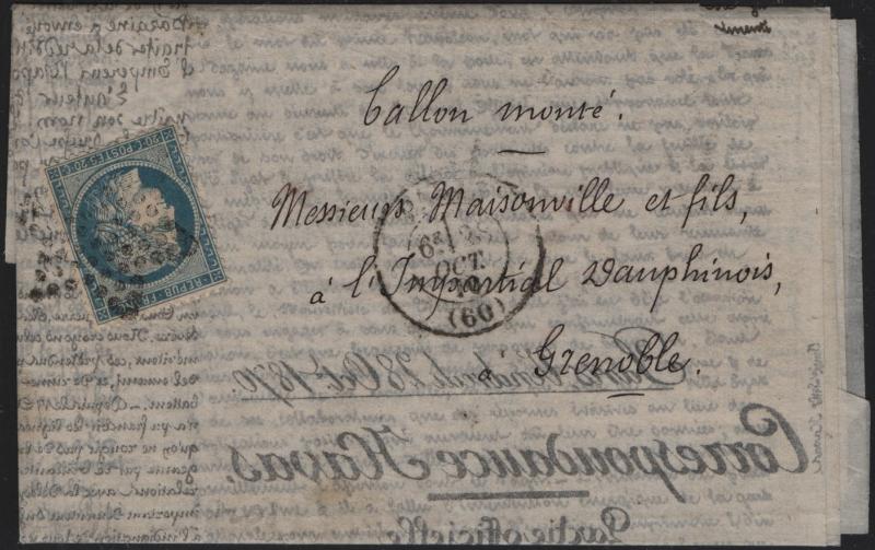 FRANCE 1870 Ballon Monte, Press Correspondance Agence Havas (French Edition ) addr to Grenoble & carried by the balloon Le Colonel Charras October 29th ascension F-VF Y&T ........ (Image)