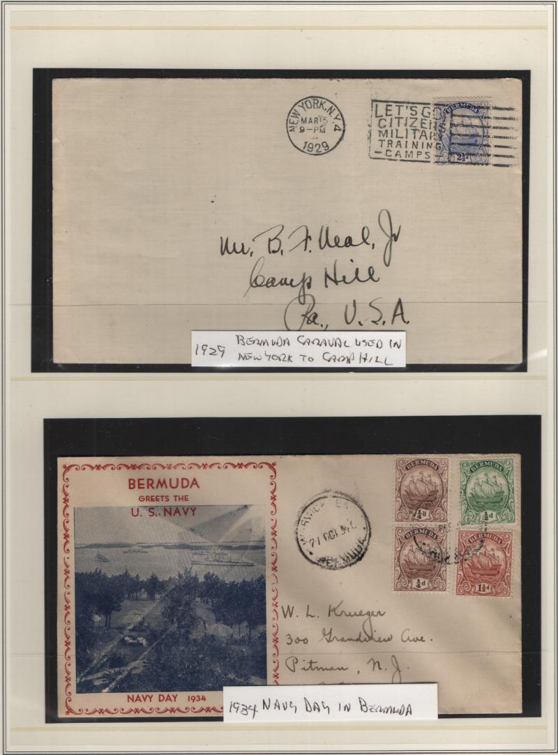 BERMUDA (25) Ship or shipping line cvrs 1929-53; incl (2) 1929 Red Star Line envs w/ 2½d Caravel pmked NYC or San Juan, 1934 "Bermuda Greets the U.S. Navy" illustrated cover; May 6, 1935, HMS Danae illustrated cover, a selection of US Ship duplexes between 1935-41, German Training Ship Schleswig Holstein 1937 illustrated, others; interesting collection, VF (Image)