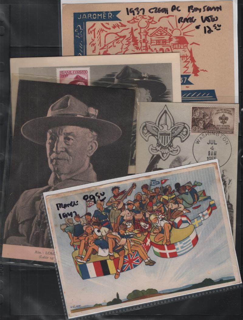 BOY SCOUTS Accum abt (250+) FDC, comml, personal cvrs & a few PPC w/ Boy Scout theme, a few diff countries; some sleeved; few flts to gen F-VF (Image)