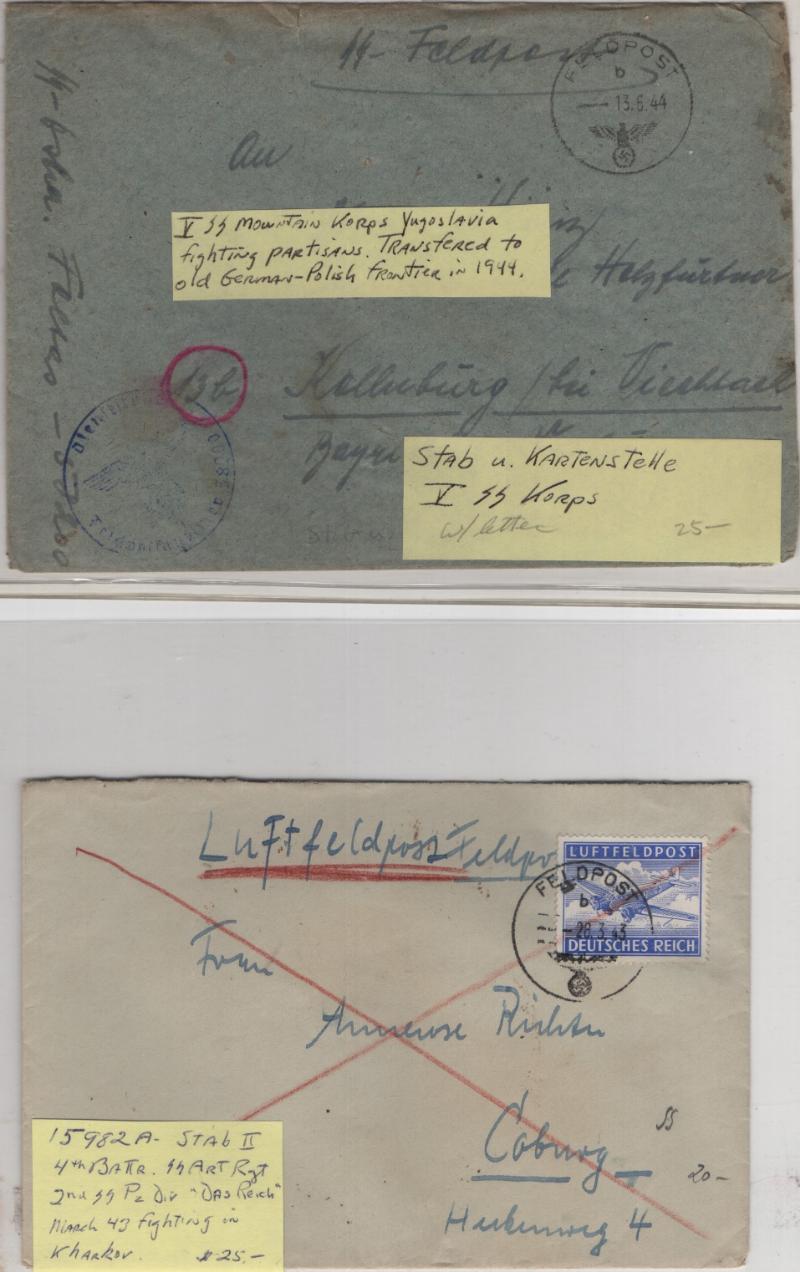 AUSTRIA Collection covers & revenues; (4) stampless (Linz, Neustadt, Prague); (5) stamped from Empire; mostly 1930s-40s incl Republic, event cancels, Anschluss, wartime German stamps w/ Austrian cancels, post-war censored, souvenir covers; group of WWII Feldpost; stamp show labels, covers & PPC; homemade album pgs for Austria-Hungary revenue collection 1860s-90s; gen F-VF (Image)