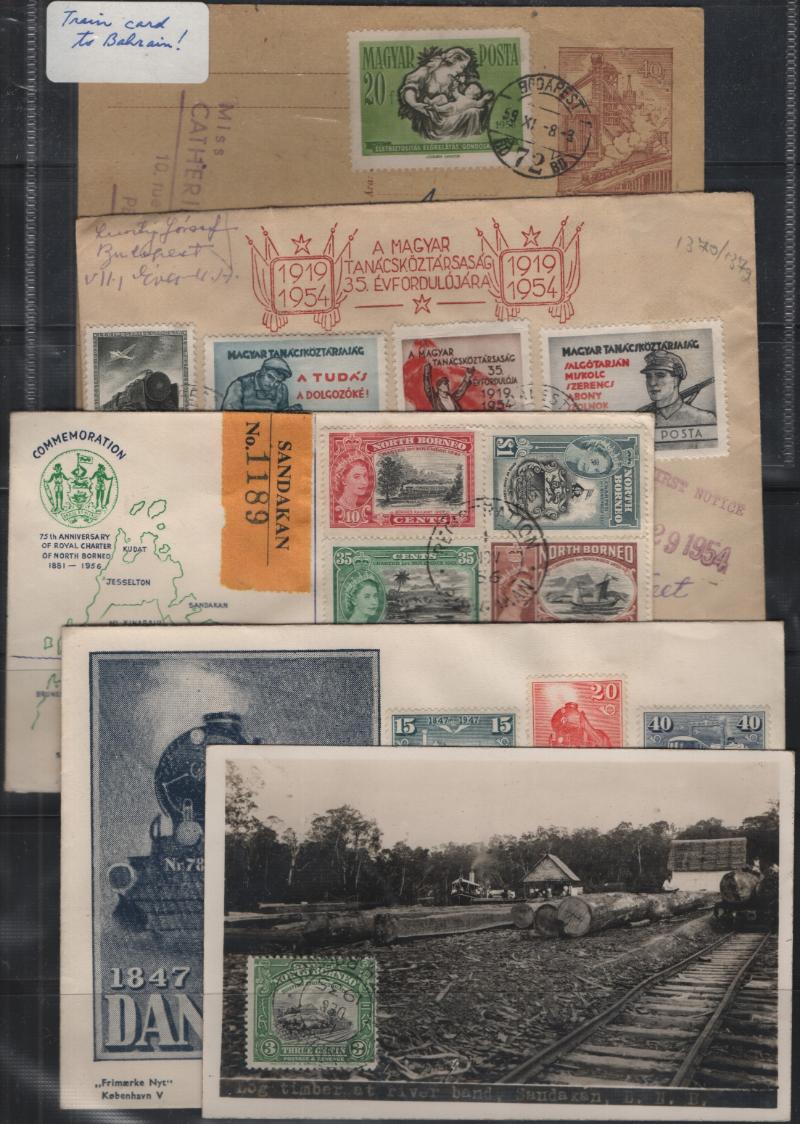 TRAINS Accum (350+) comml & personal cvrs w/ train stamps, also a few train themed PPC, some sleeved; few flts to F-VF (Image)