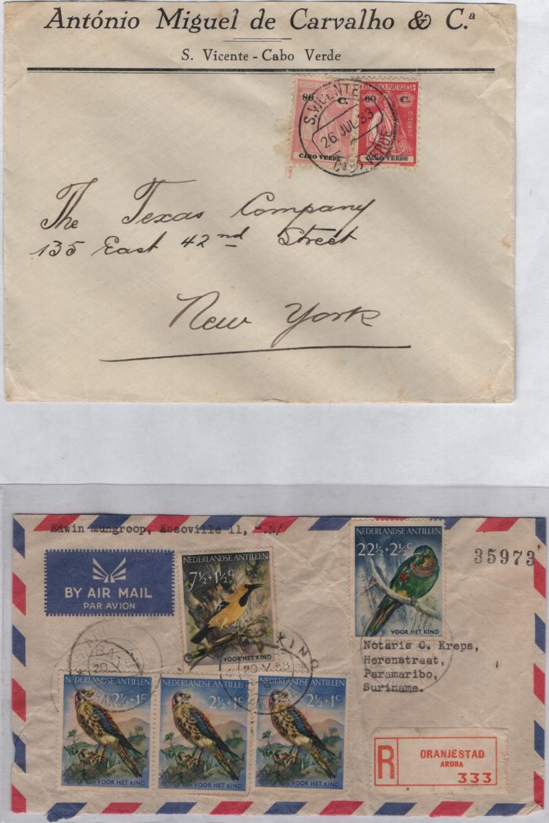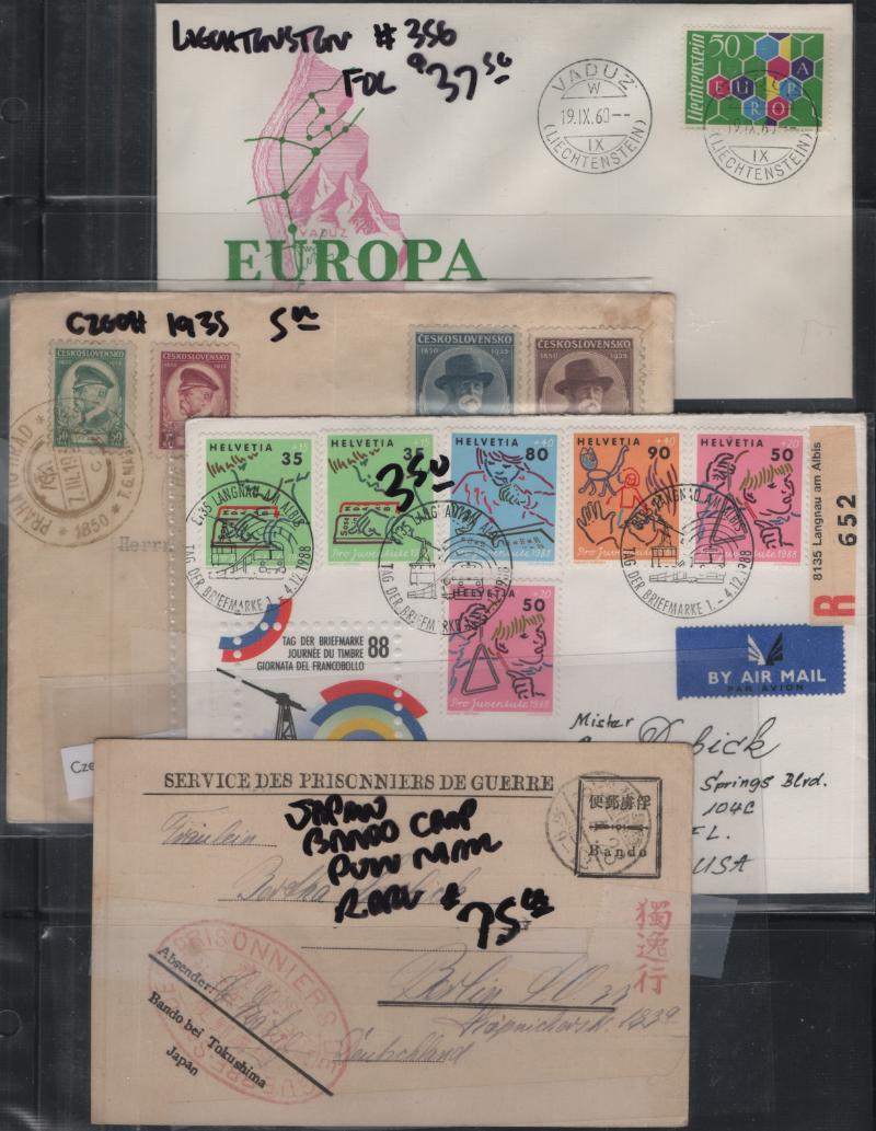 Couple (100), much interesting & unusual, much Europe but also Latin America, Egypt, Japan & more (no Germany) mostly 20th Cent; personal, comml, philatelic sets, first flights (Castries - San Juan signed by pilot, Portugal, others), used stationery, censor, airmail & more; good frankings, some flts, gen F-VF (Image)