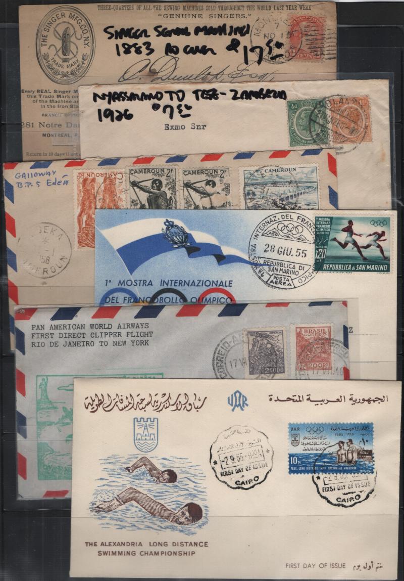 Accum adv, air, comml, registered, corresp, event, nice franking on some w/ full sets on env, FDC, from Australia, Austria, Belgium, Brit Colonies, Canada, Egypt, France, Germany, Haiti, Hungary, India, Lux, Mexico, Namibia, Norway, Portugal, Romania, San Marino, Sharjah, Spain, Switz, UAR, Vatican, Vietnam, UN, US & many more, few flts but mainly F-VF (Image)