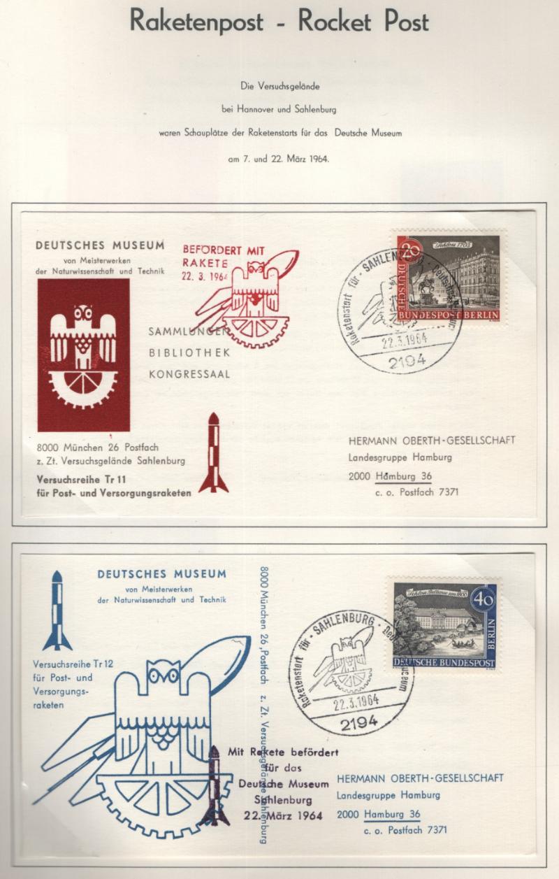 ROCKET Lighthouse Raketenpost album w/ covers & some stamps 1963-1974 (pgs 1959-74), mostly West German but also West Berlin, DDR, USA, Neth, Yugoslavia; few stamps from Paraguay relating to the topic; many receipts & descriptions from past purchases, gen VF (Image)