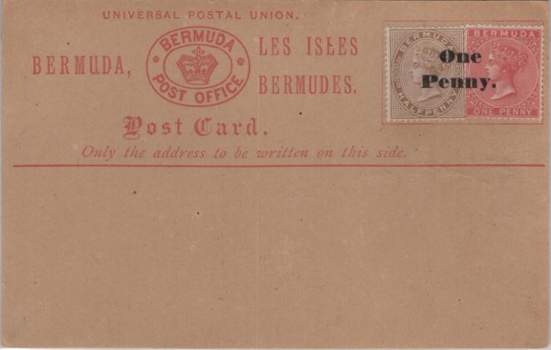 BERMUDA H&G Catalog #6 setting C, unused, all 80 to 87 copies of the overprinted postcards were bought by P.O. clerk A.A.C. Jones; 1986 H&G CV $500; gen F-VF (Proceeds benefit APS) (Image)