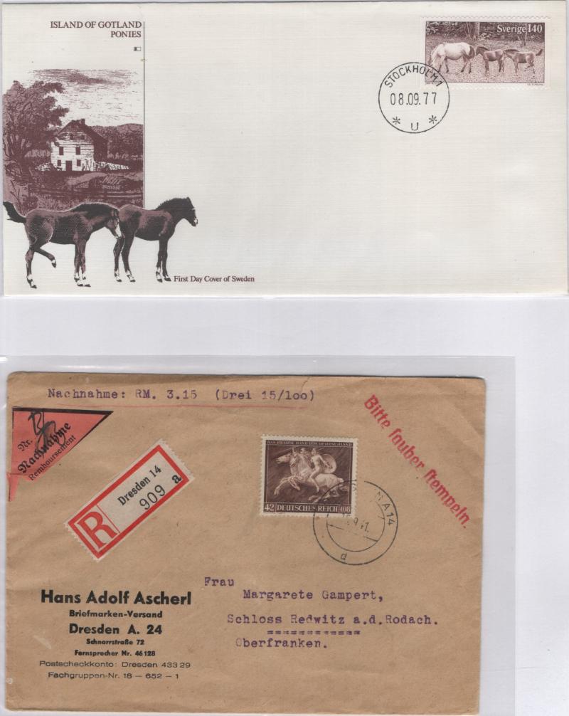 HORSES abt (650) mix of WW & US w/ horses on stamp, on cancel or on cachet, incl abt (200) PPC, regular, business & European sizes, good variety, gen F-VF (Image)