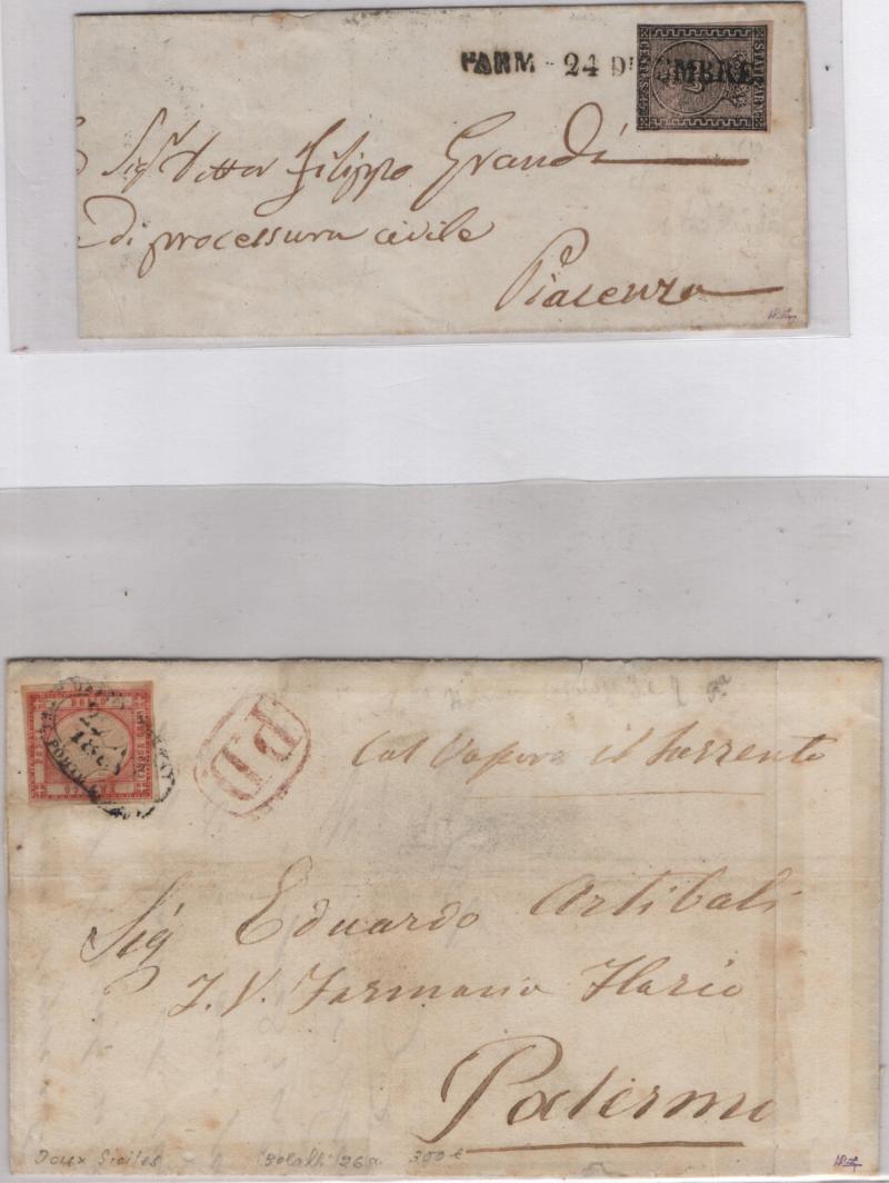 ITALIAN STATES (4) Classic covers: (2) stampless from Macerata (Marche), official hs from the mayor, Parma #3 small FLS straightline date cancel; Two Sicilies #23 rough edges; gen F (Image)