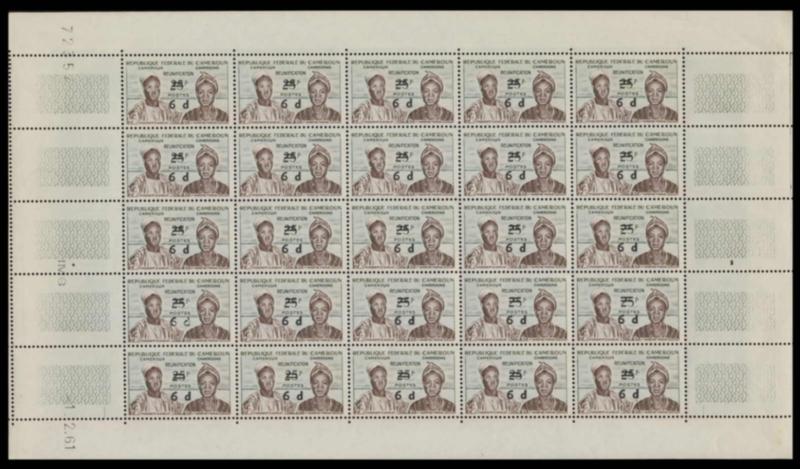 1962, 6d on 25f Reunification, complete sheet of 25, never hinged and fresh, some trivial selvage flaws, an otherwise very fine and high-cataloguing sheet. (Image1)