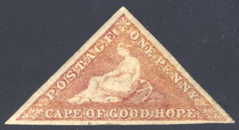1857, 1d brick red Hope Seated, on cream paper, watermark Anchor, unused, without gum, margins clear to ample, rich deep colour, catalogued as an original gum example, an elusive shade, fine-very fine. (Sc. 3b, $6,000). (Image1)