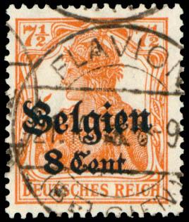 8 C auf 7½ Pfg Germania rötlichorange mit ZW 0,8, sauber gestempelt ESSCHEN 10.6.18, Pracht, sign. Hey BPP