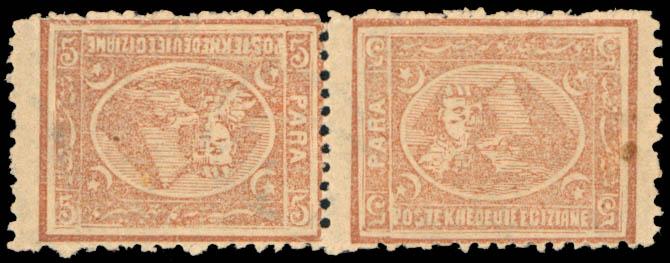 5 Para Sphinx and Pyramid, thin paper, horizontal tête-bêche pair, mint nh, small traces of aging, still very fine