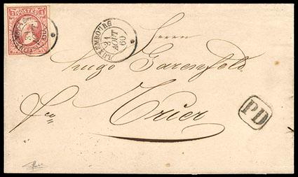 A BEAUTIFUL EARLY J.B. MOENS STAMP ADVERTISING COVER AND PERHAPS THE FINEST EUROPEAN ADVERTISING COVER OF THE CLASSIC PERIOD. US$5,000-7,500 (Image)