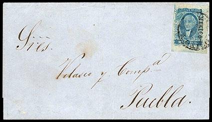 AN EXCELLENT EXAMPLE OF A CUBA 1855 ½R QUEEN ISABELLA II ISSUE USED IN PUERTO RICO. US$1,000-1,500 (Image)