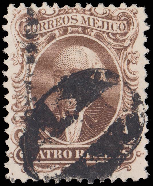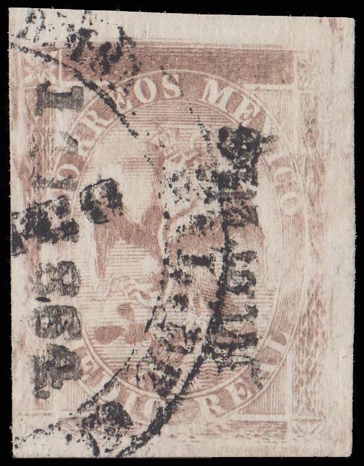 1864, Eagle (2nd Period), ½r brown (Scott 19a),Morelia district overprint, consignment no. 1-1864, unusually fresh, Very Fine to Extremely Fine, with a 1989 M.E.P.S.I. certificate. Scott $2,250. (Image)