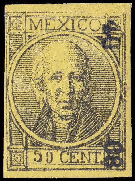 1868, Hidalgo (thin figures, imperf), 50c black on yellow (Scott 49), consignment no. 40-68 (Tlaxcala), o.g., exceptionally fresh and bright, Fine to Very Fine, with a 1988 M.E.P.S.I. certificate. Scott $600. (Image)