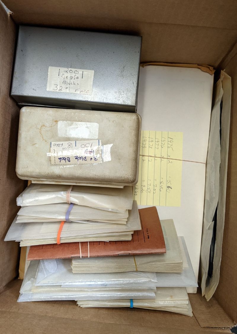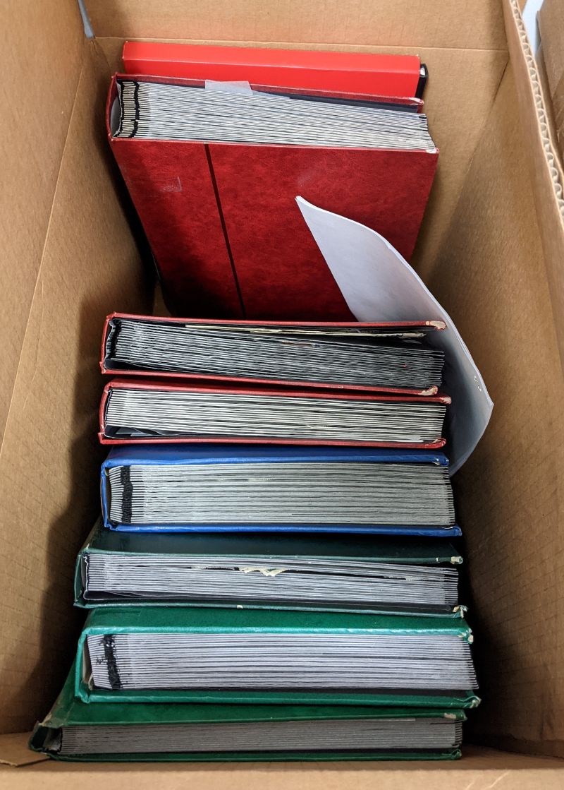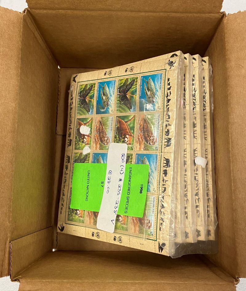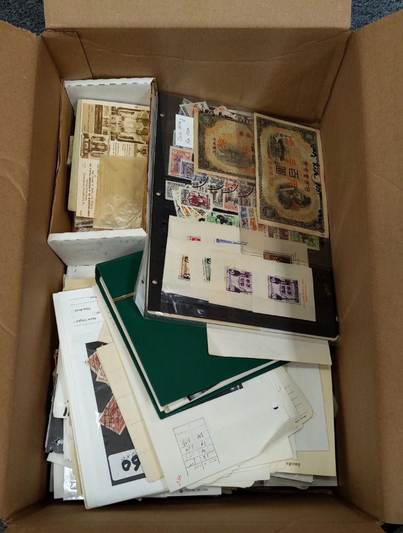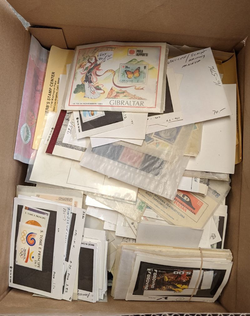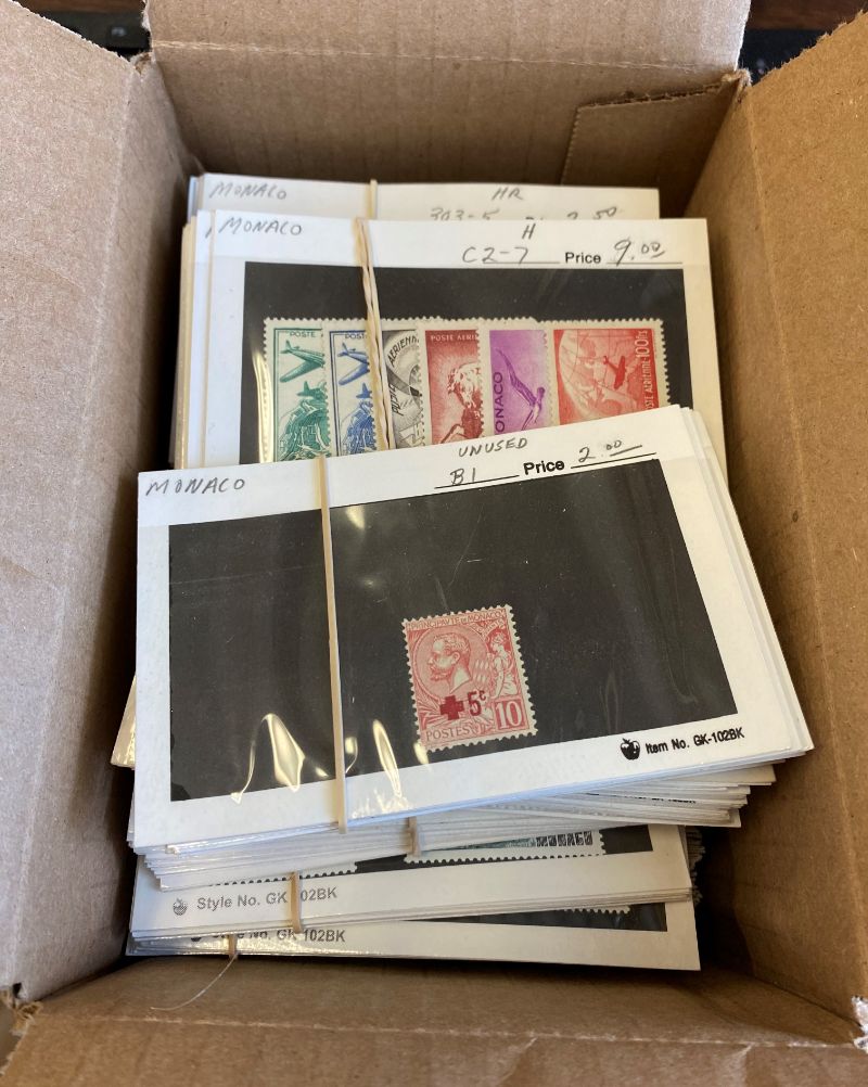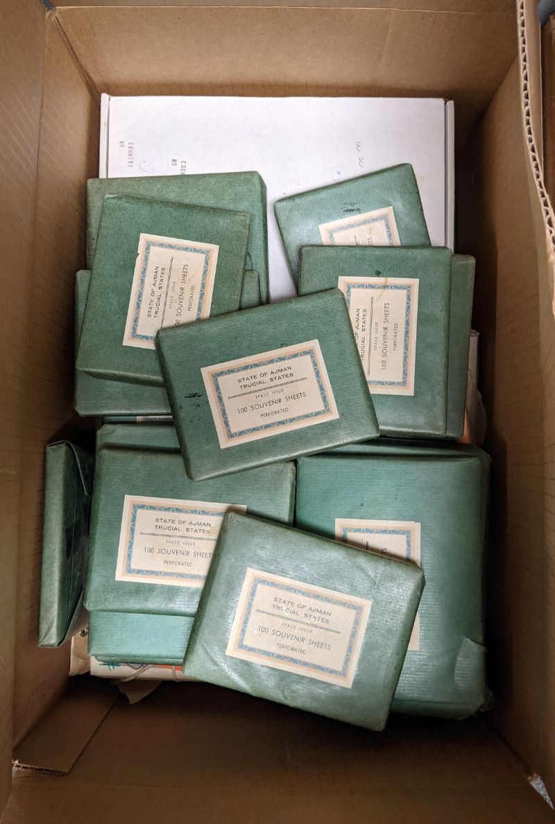 Huge unorganized stash of US & foreign PPC, loose, filling up (2) large ctns, accumulated over the years by a retired stamp dealer; all kinds of cards here: travel scenes, nature, greetings, holidays, RPC, PMC, vintage, white border, linen, early chrome, modern Continental, hotels, rack cards (not many), humor, art, foreign mostly Europe & Canada; many mailed, a few sleeved, expect some typical wear, gen F-VF
