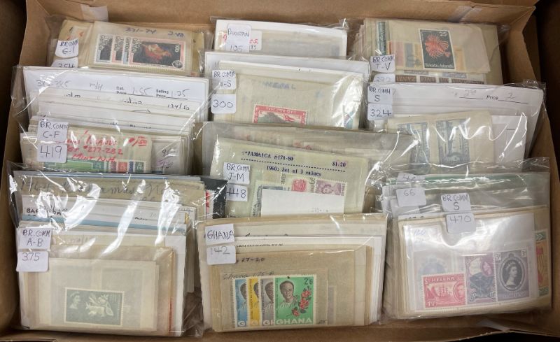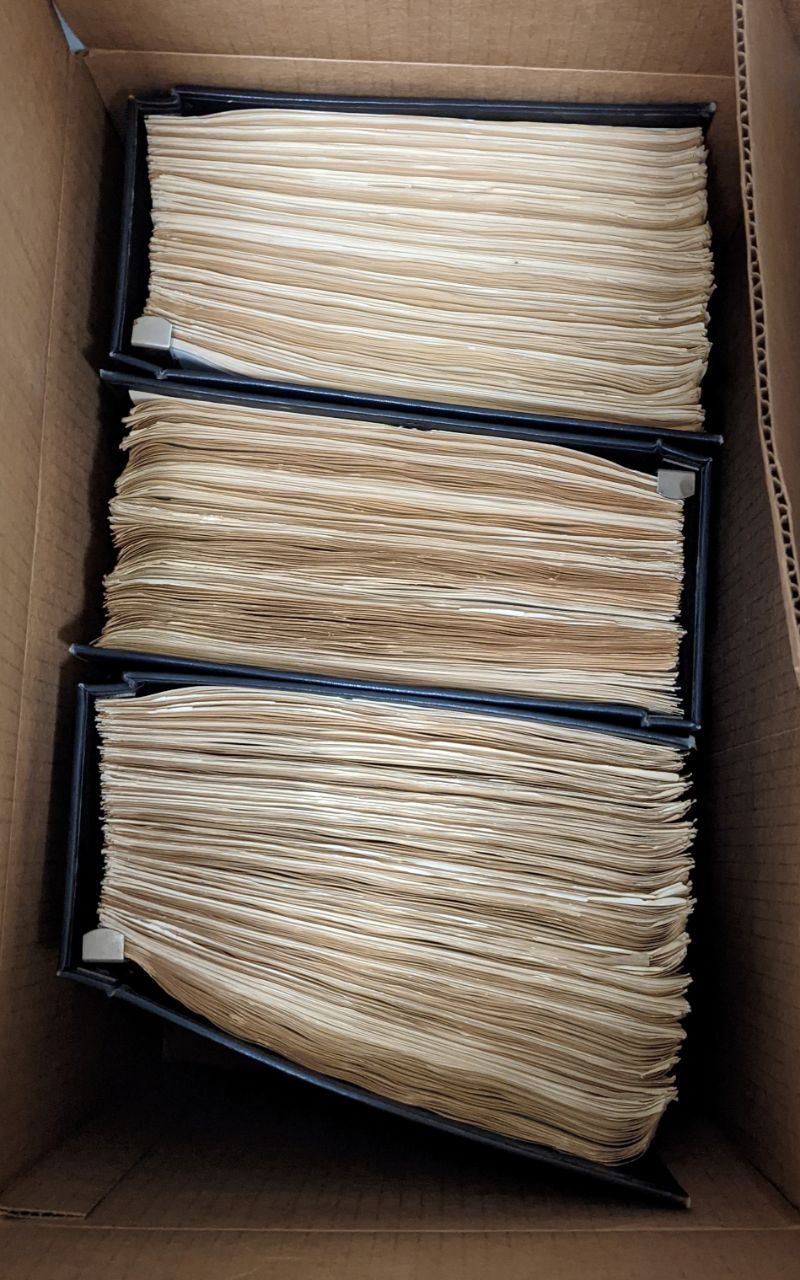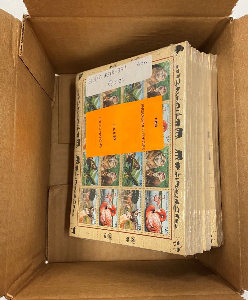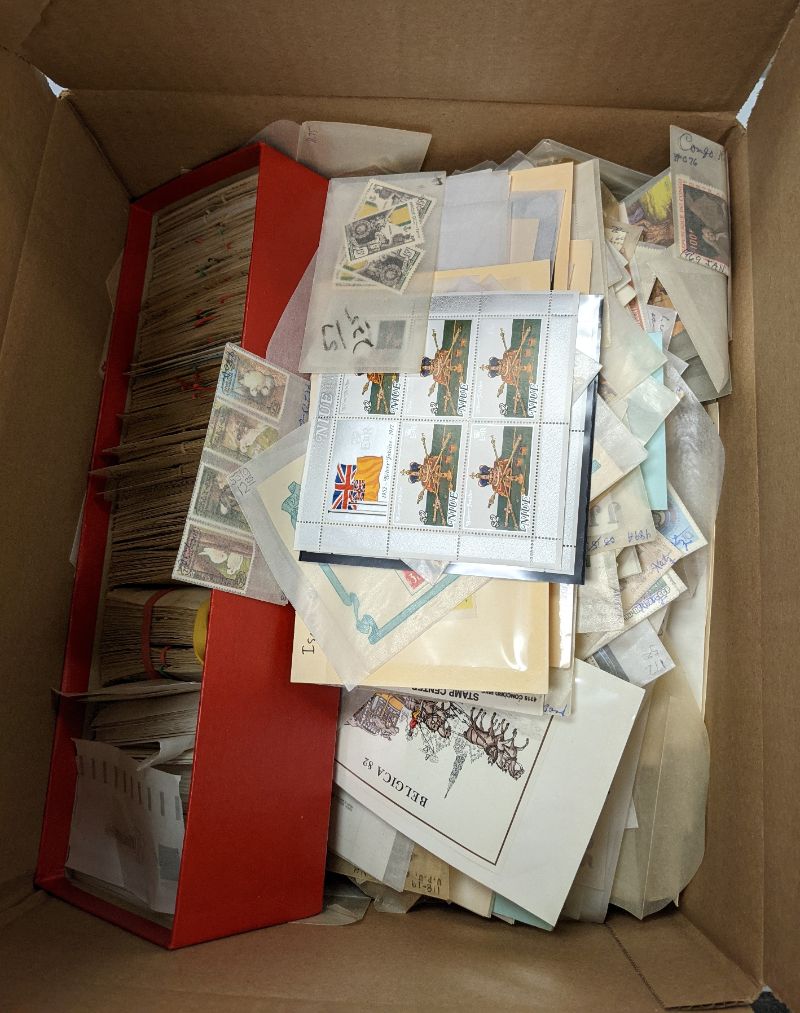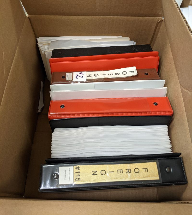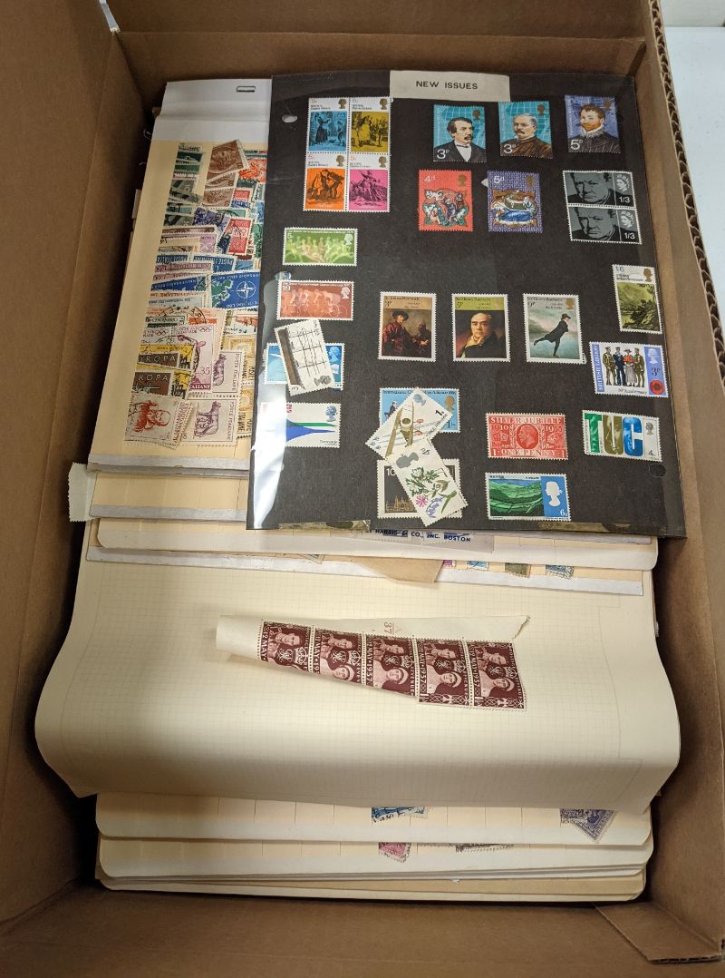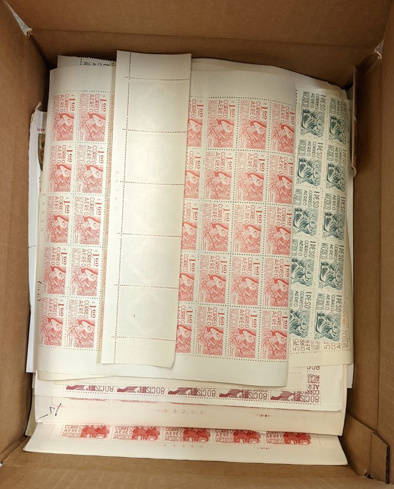 Huge unorganized stash of US & foreign PPC, loose, filling up (2) large ctns, accumulated over the years by a retired stamp dealer; all kinds of cards here: travel scenes, nature, greetings, holidays, RPC, PMC, vintage, white border, linen, early chrome, modern Continental, hotels, rack cards (not many), humor, art, foreign mostly Europe & Canada; many mailed, a few sleeved, expect some typical wear, gen F-VF