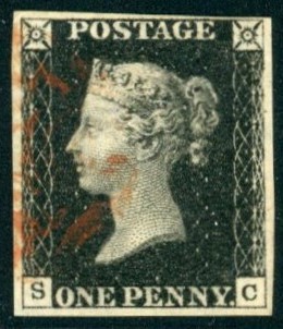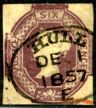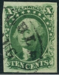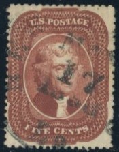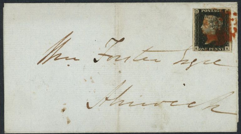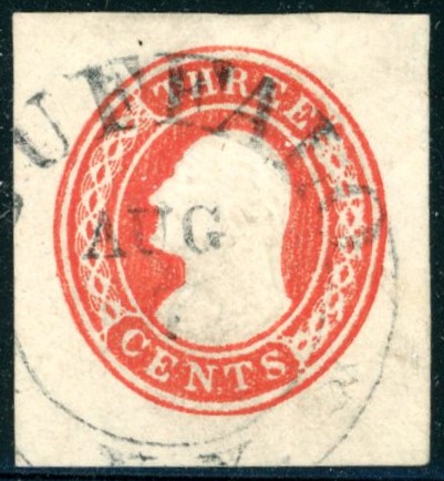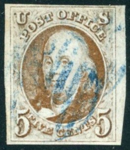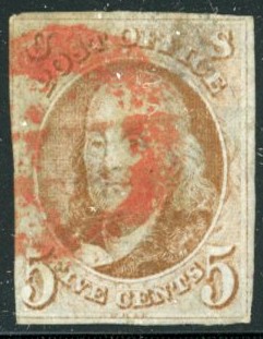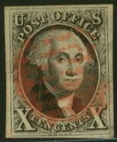 1a dark brown w/ 3 1/2 margins tied by red grid cancel at UL to 1849 folded letter, faint red Rochester NY cds at UR, content of legal issues to "Dear Father", addr to S. A. Burrows Esq/ Buffalo NY in reference to (NY) Supreme Court case; some toning & foxing in center between file folds not affecting stamp, stamp w/ large margins to touching at right w/ part of next stamp at top, VF (Image)