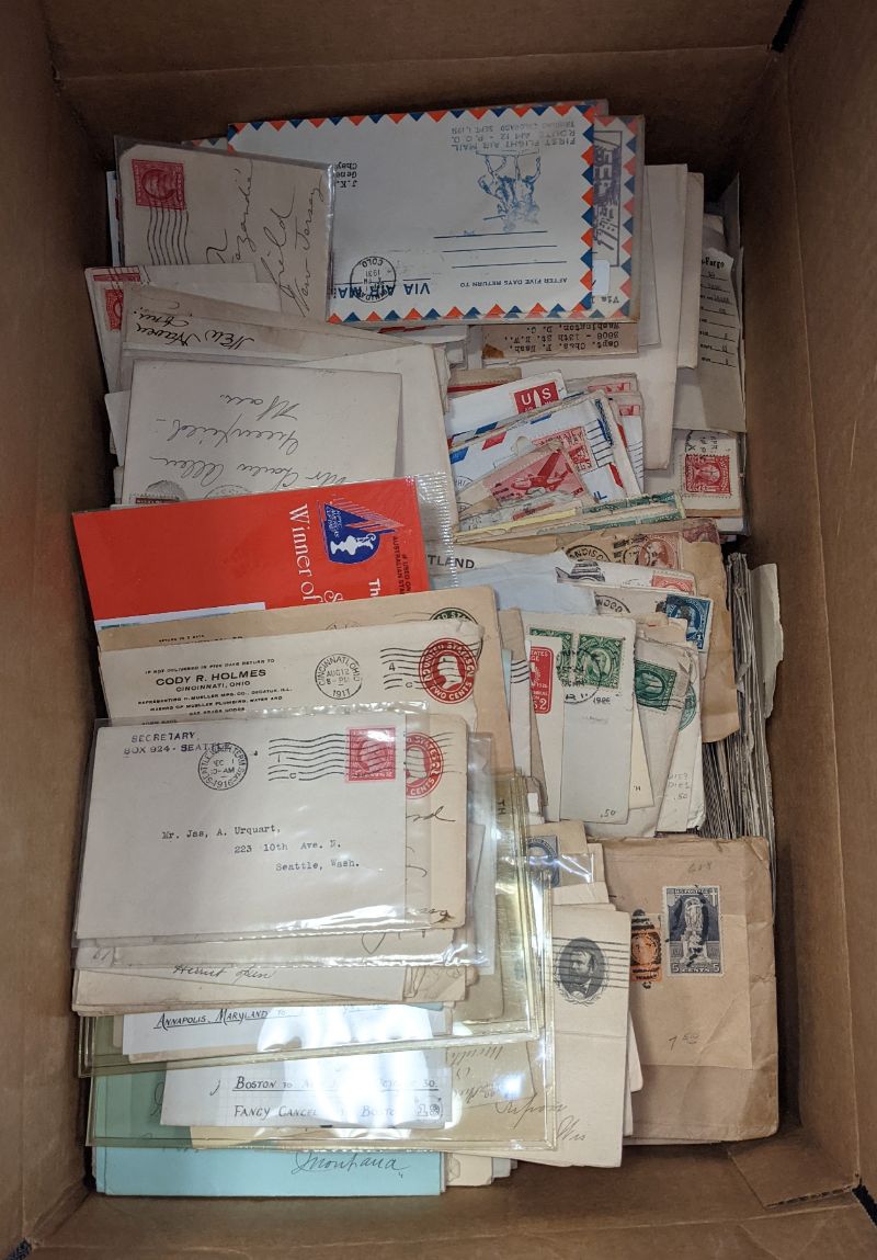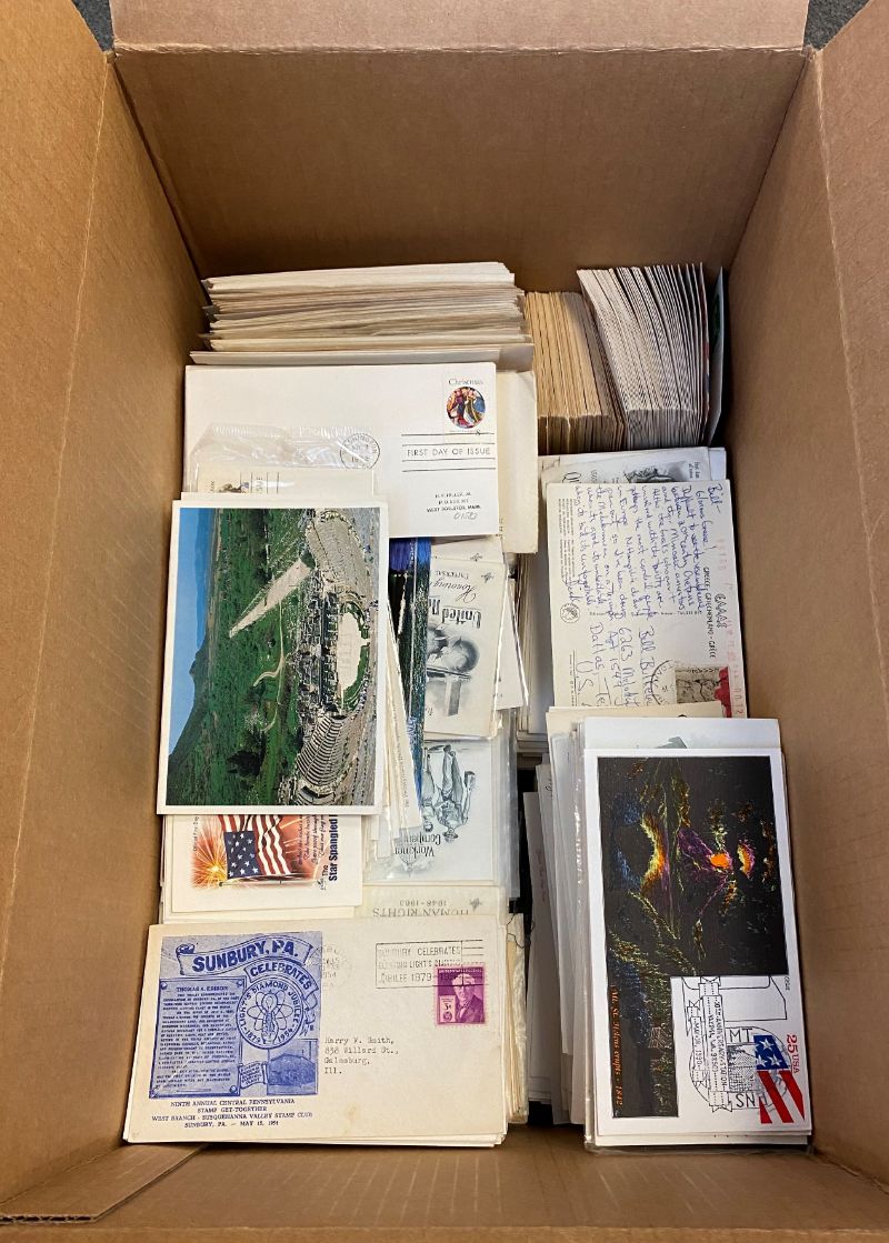 (1000+) mostly used postcards w many US but some WW, many PPC w/ topicals & holidays plus over (100) diff Amateur Radio Station postcards, a very interesting group, also (100s) covers mainly US w/ comml & personal, few faults many F-VF