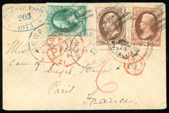 116 on cover to France (small hole in center of cover), stamp has nice margin for this issue, dated May 6, 1870, overall VF cond except for noted (Image)