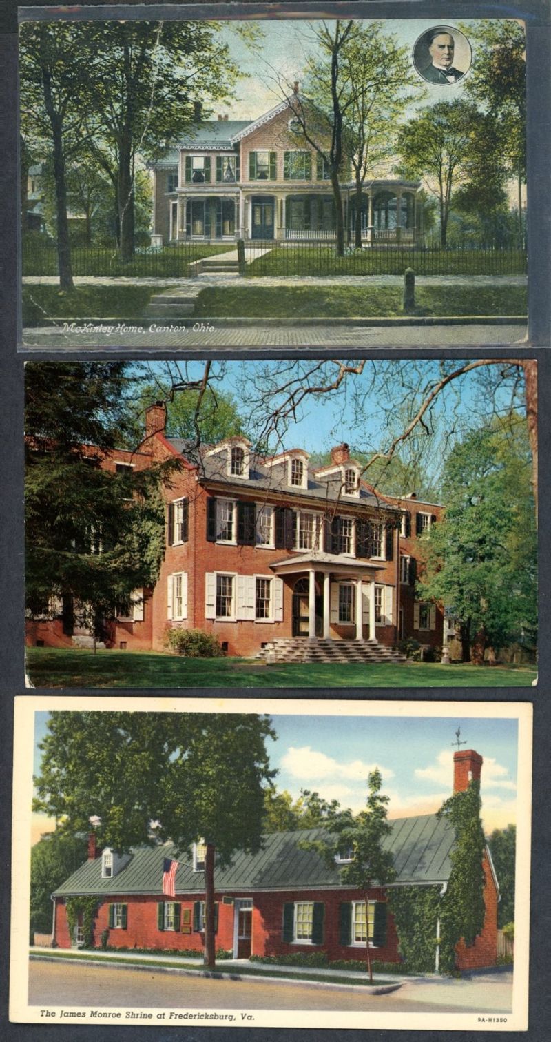 PRESIDENTS Abt (250) topical PPC in plastic pages, ranging from Jefferson to Reagan, vintage to small size chrome, incl portraits or photographs, homes, museums, monuments, etc; a few mailed, little if any dup, gen F-VF (Image)