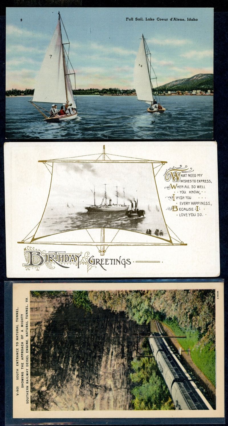 TRANSPORTATION (350+) 1910s-80s cards showing all kinds of transport: automobiles from adv to street scenes, historical to modern ships at sea, rivers, ports, locks, airplanes early to jet, trains, tracks, stations, spacecraft, more; great selection, a few mailed, a few foreign, gen F-VF (Image)