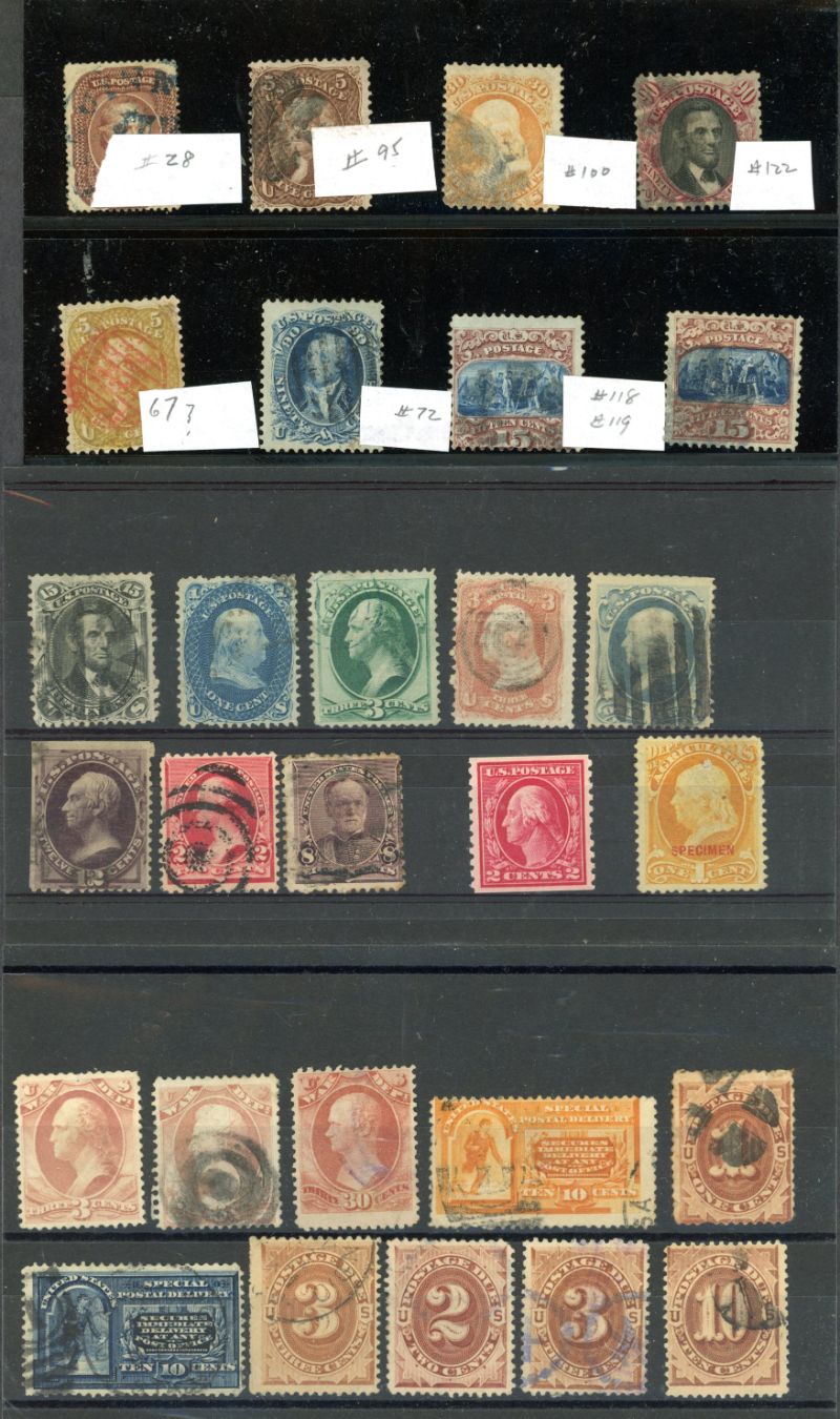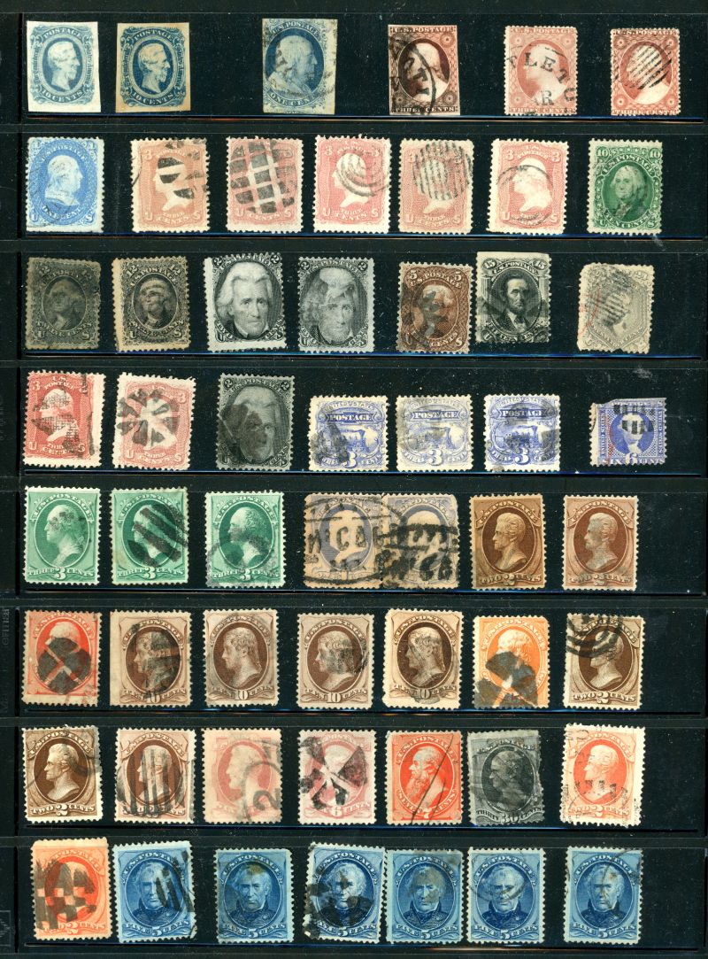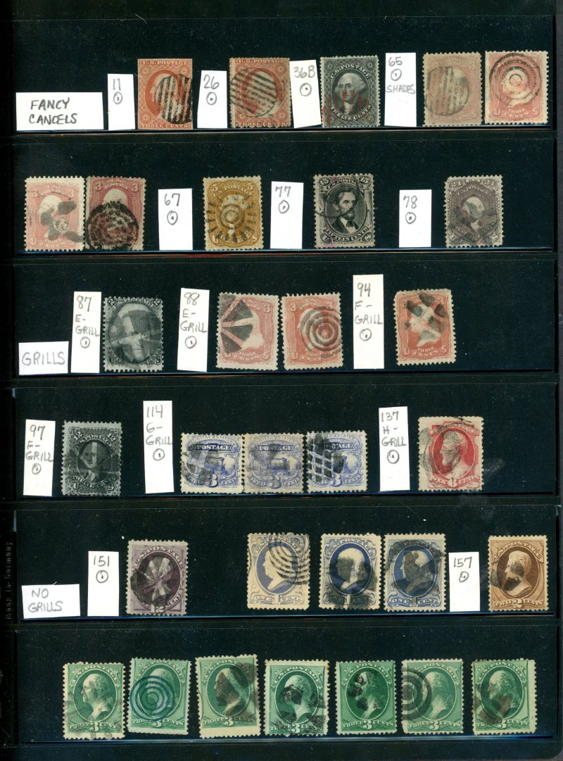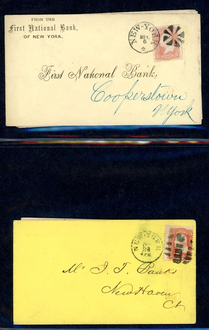Group of (132) covers, postal stationery & cards, 1860s-90s in plastic pages, w/ fancy or unusual cancels, wide range of large city & small town cancels from east to west coast, cancels incl cork geometrics, targets, stars, numbers, negative numbers & letters, grids, most black few blue or red, cond varies, expect typical faults for period, Fine+ (Image)