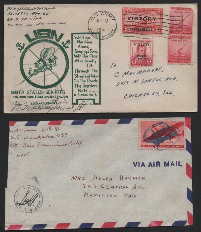 (400) diff covers w/ cachets by Bill Everett incl spectacular group of colorful naval covers, FDCs, topicals w/ planes, ships, soldiers etc, some are hand colored, an unusual collection for military collector, cover collector or eBay or bourse dealer, this is the lot that you have been waiting for, cond VF (Image)