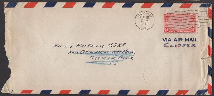 WWII, CORREGIDOR Fascinating group of over (120) cvrs to the same sailor, an ensign from the period Feb 1941 to 1945, no ordinary ensign as he became a cryptographer in the Naval Fleet Radio unit & worked with the Navy's copy of the notorious Japanese "Purple" cypher machine, he was stationed on Corregidor from abt Feb of 1941 till evacuated by submarine March 17th 1942, the covers span the entire period, many are addressed to Fort Mills Corregidor & some bear interesting high value Prexy & airmail frankings, also incl later cvrs to 1945 following his war time career, it's amazing these survived & were taken along when he was evacuated, mixed cond tears, creases, stains, roughly opened etc gen F-VF (Image)