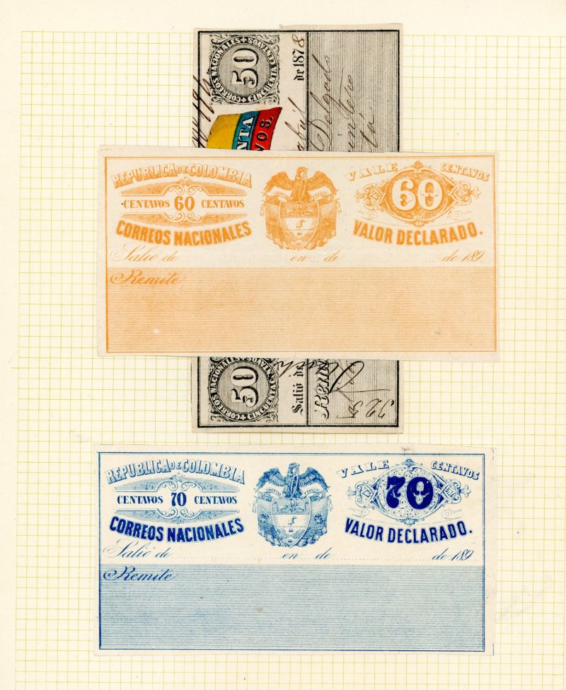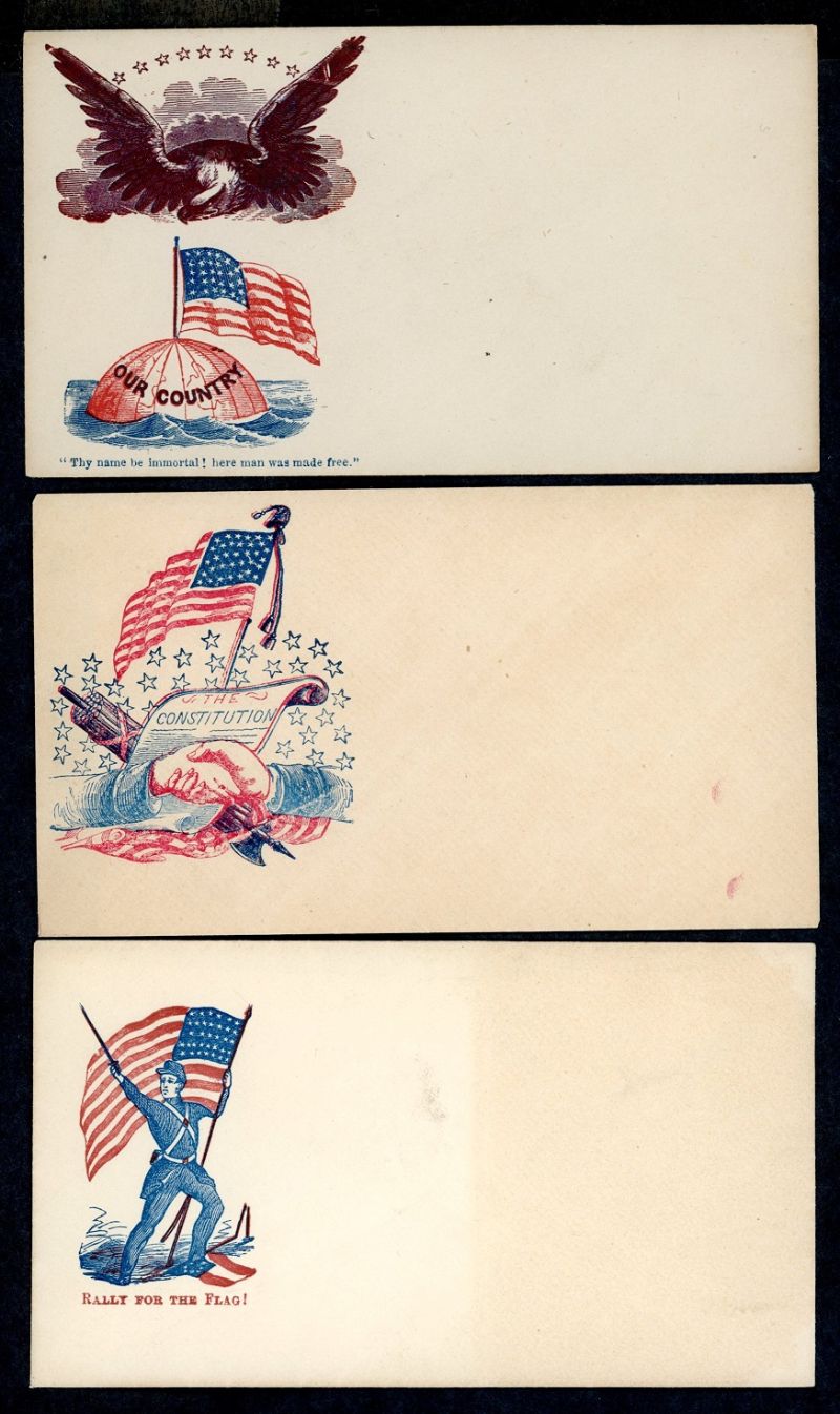 (12) attractive covers 1855-1925, few all-over incl one multi-colored, one early embossed, better noted 1925 Monarch Coffee multi-colored window envelope (reverse); 1898 overall Medicine; 1855 blue embossed shield for Hardware Co; 1865 blue saw for Cutlery; 1884 plow; 1922 D. Webster Flower w/ adv pamphlets inside etc, gen F-VF, few small cover flaws/faults, attractive group (Image)