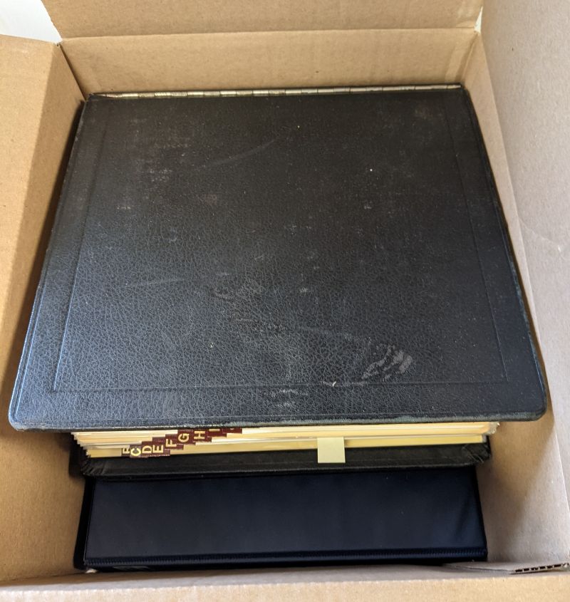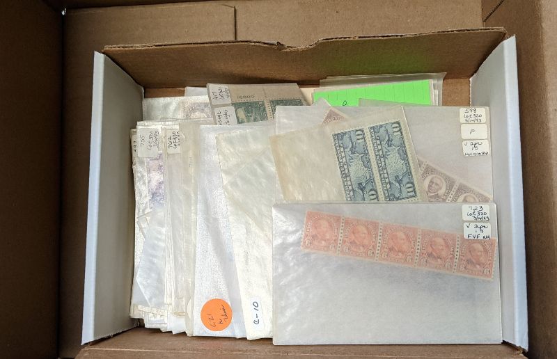 Large accum (3300+) postcards organized by state, regionally, in (8) shoe boxes, looks like there are some from every state plus DC and PR; some less common states w/ just (10-20) but larger groups incl one shoe box each of FL, MA, NY, and VA; variety of topics and styles from vintage to early chrome, souvenir packs, abt (150) from NYC, lots of linens & white borders, very few modern type; a few sleeved, some mailed, gen F-VF (Image)