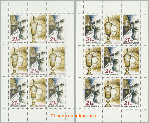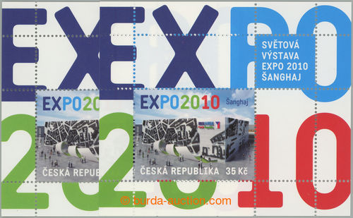 Philately. Pof.A623 production flaw, EXPO 2010 35CZK, 2 pcs of miniature sheets, catalogue production flaw 1 and production flaw 2 - rose stain in big X L and R from center; very fine (Image) (Image2)