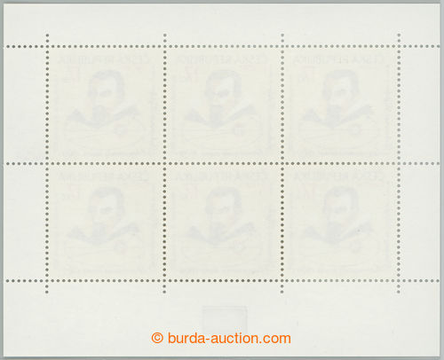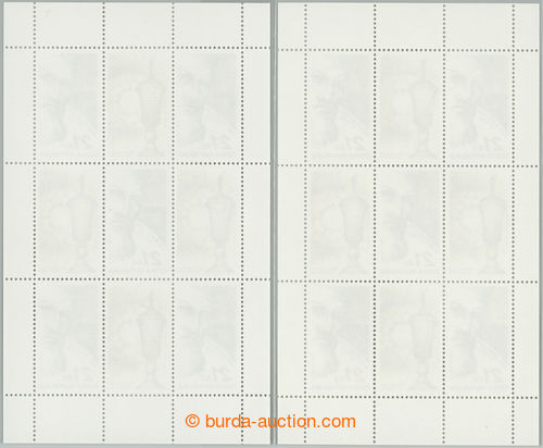Philately. Pof.PL600, Rabin Low 21CZK, complete counter sheet, significantly light color shade black also numeral value, katalogizovano; rare usage, including complete counter sheet common shade for comparison, in addition with